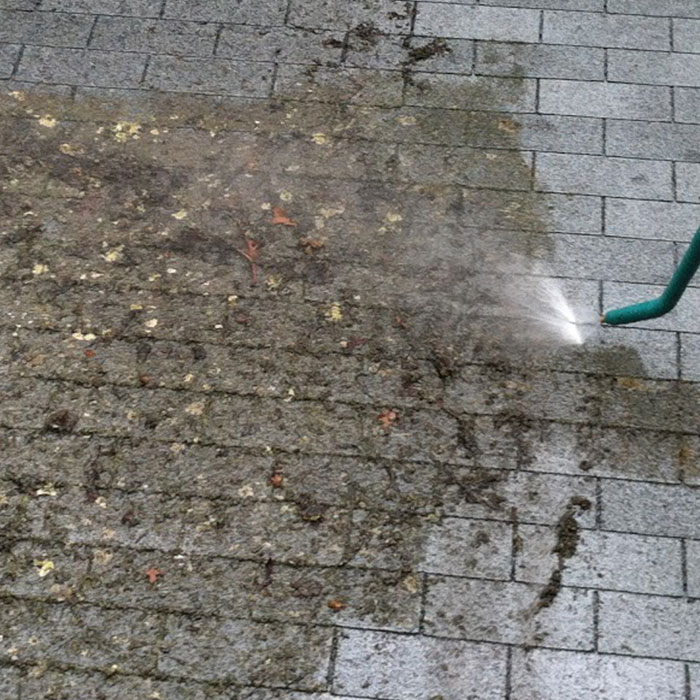 Pour débuter, nous nous servirons d’une brosse métallique pour enlever les plus gros morceaux de mousse. Ensuite, nous utiliserons notre nettoyeur à pression pour ôter les débris. Après cela, nous appliquerons sur l’intégralité de votre toiture du produit anti-mousse. Un temps de pause est requis avant de rincer.